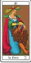 Tarot Card 11 [12] shows the 'maiden' with the tamed lion of the lower self.